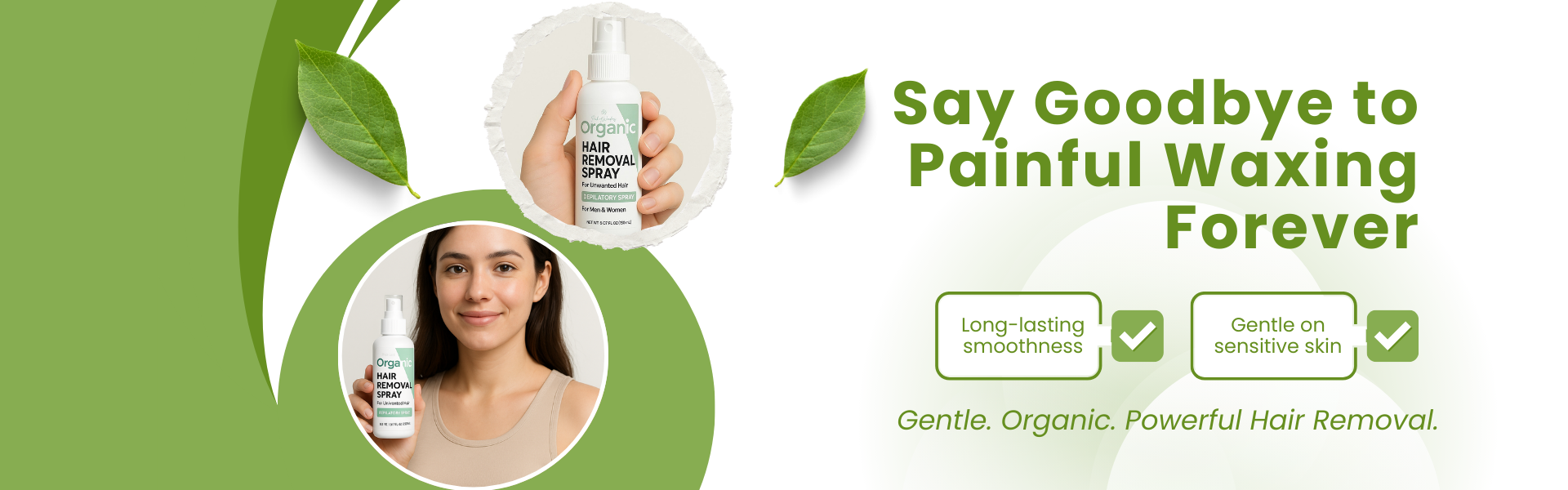 Experience silky smooth skin in just 2-3 minutes with our Permanent Organic Hair Removal Spray.