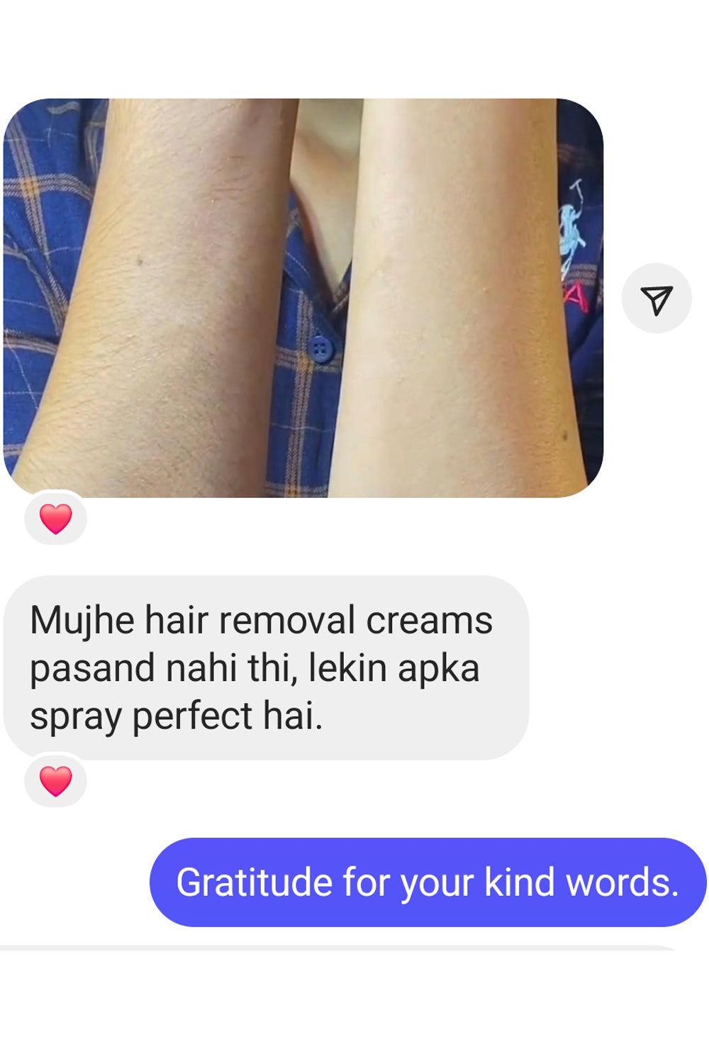 Formulated with 100% natural herbal ingredients, this spray gently removes unwanted hair without pain, irritation, or harsh chemicals.