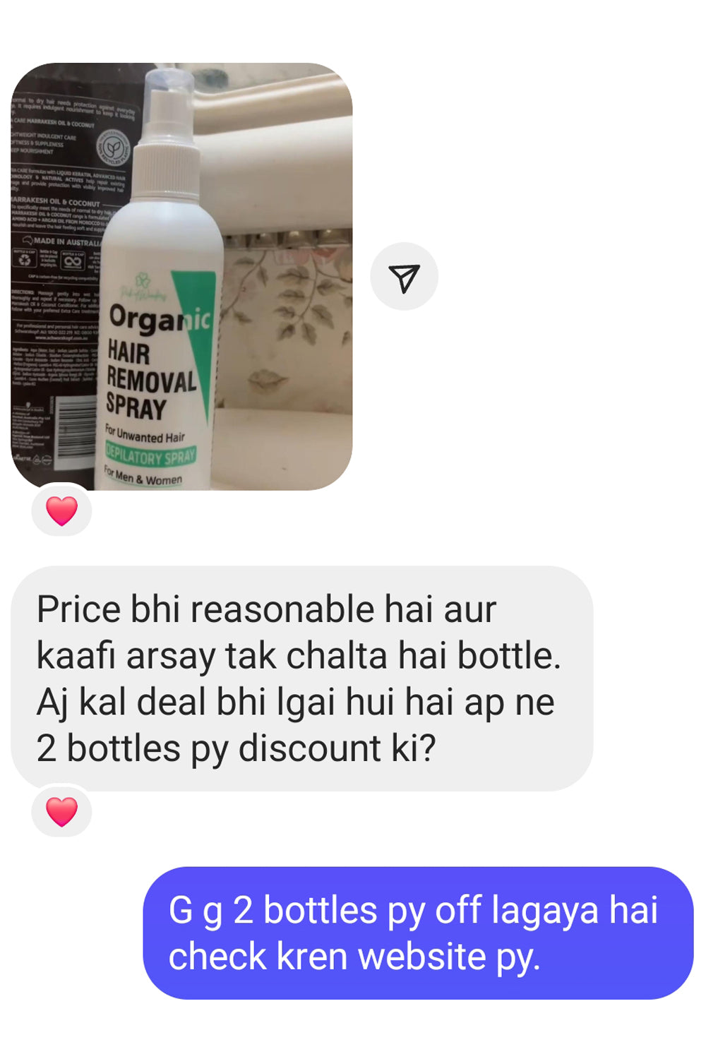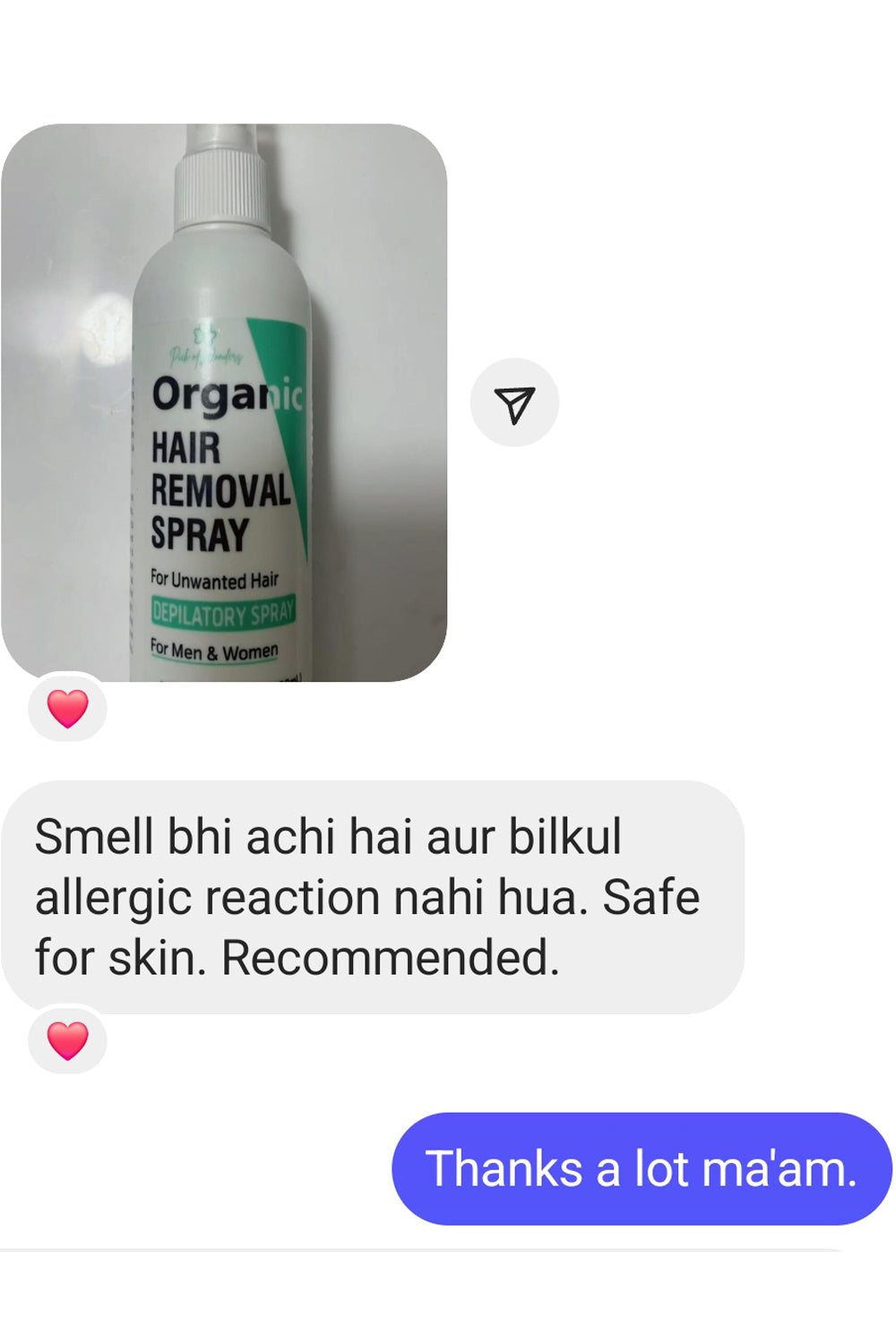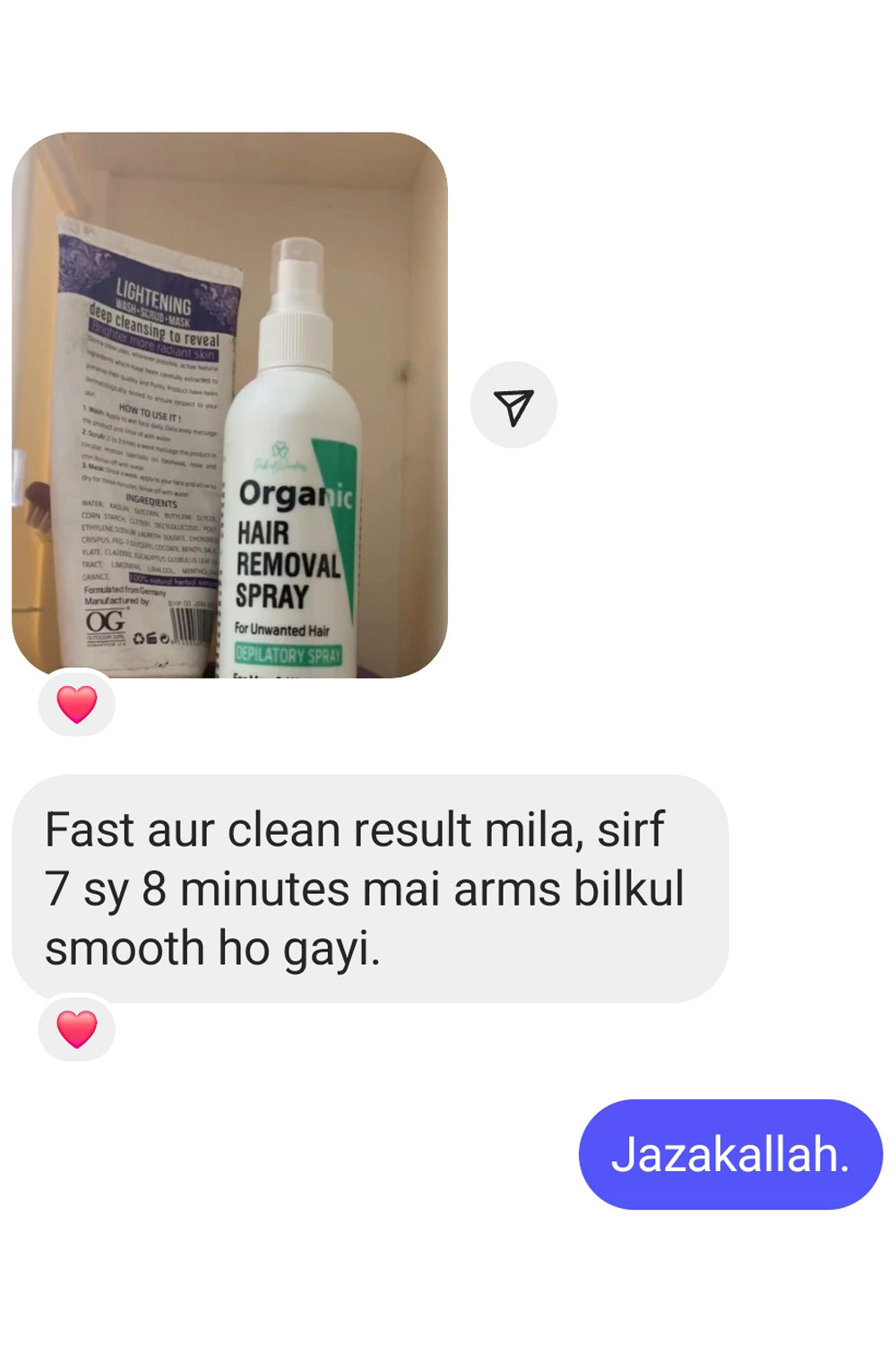 Experience silky smooth skin in just 2-3 minutes with our Permanent Organic Hair Removal Spray.