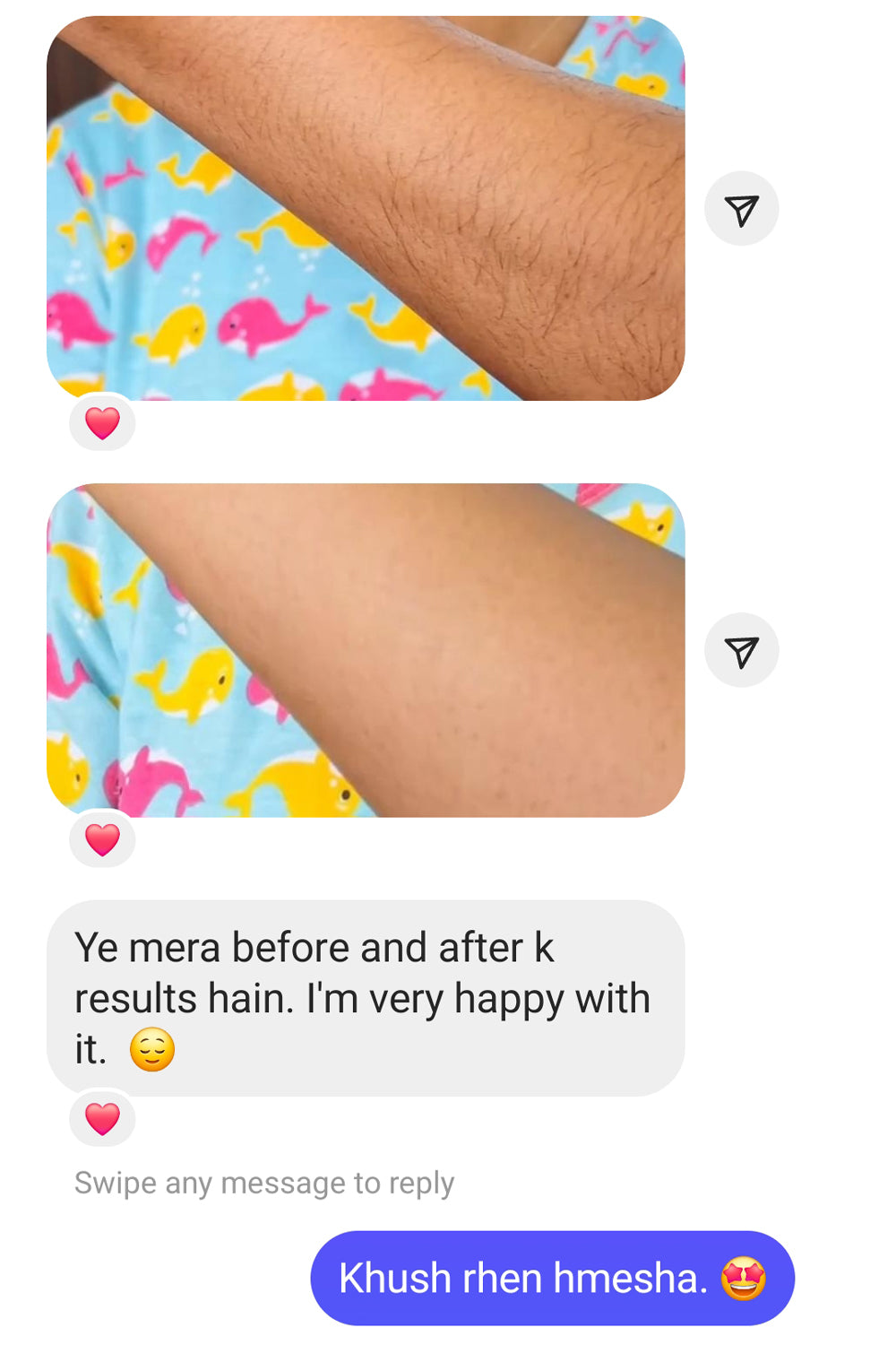 ✅ Yes! It’s made with 100% organic herbal extracts, free from harsh chemicals, and safe for sensitive skin areas like underarms and bikini lines.